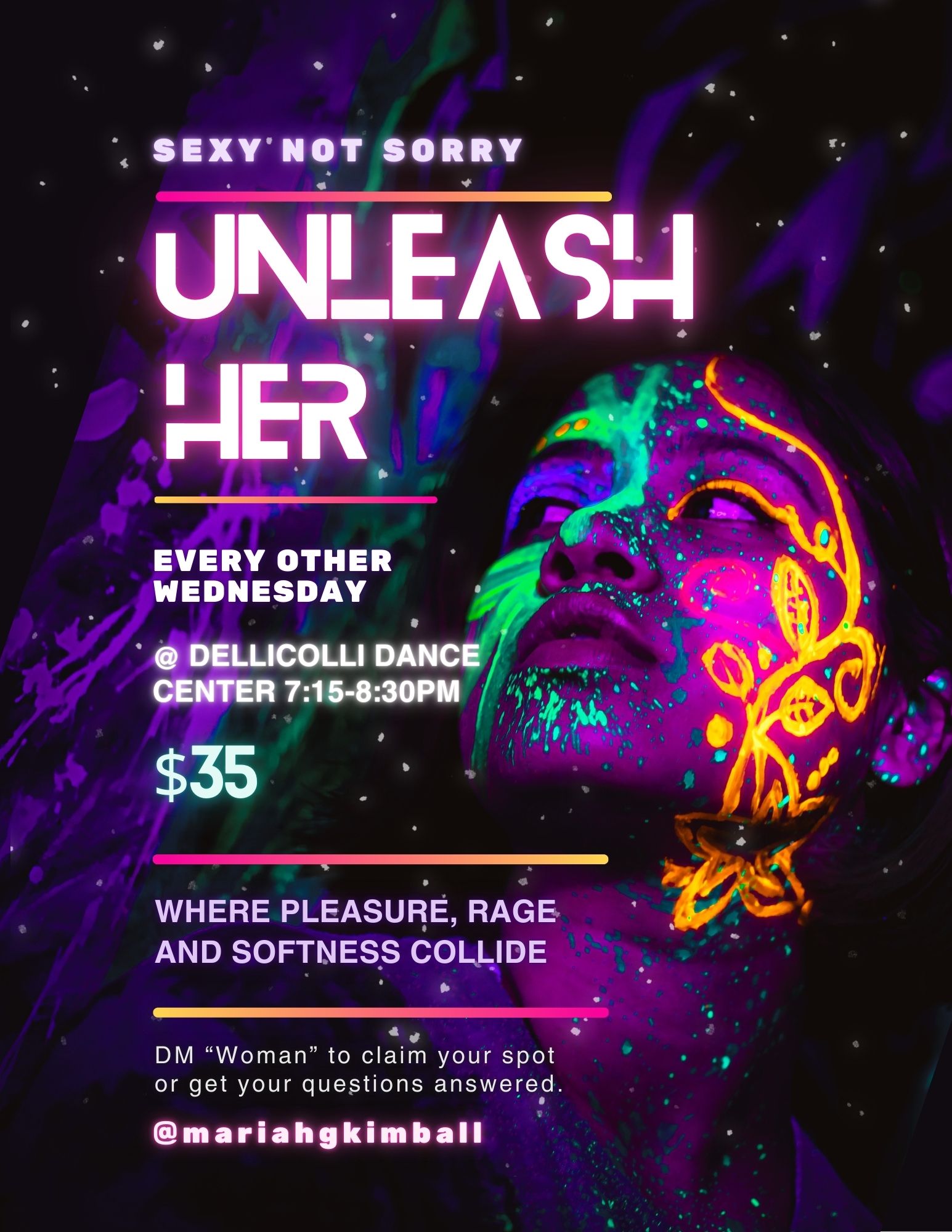 In Unleash Her, we reclaim everything that’s been suppressed and embrace the full spectrum of our desires. This isn’t about performing for anyone or fitting into some mold—it’s about letting go, surrendering, and fully embodying your wild, sensual, powerful self.
